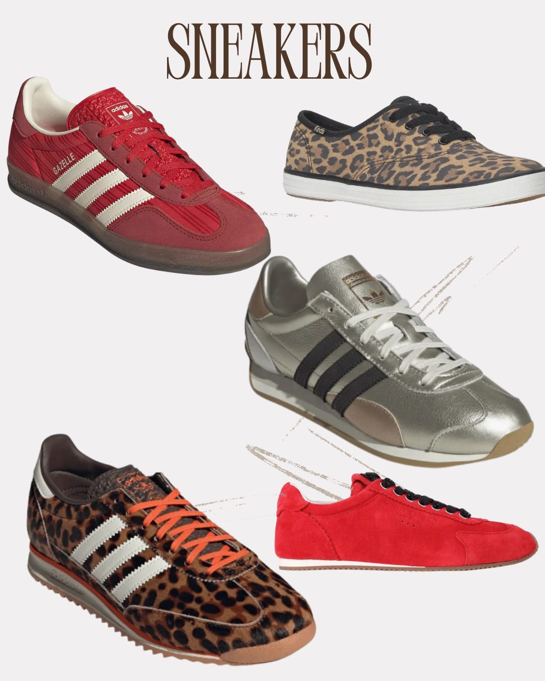 red adidas | leopard keds | metallic adidas | leopard adidas | KG red sneaker